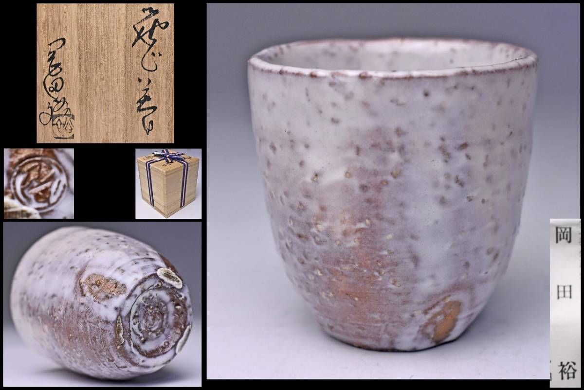 > 岡田裕 ★ 萩 ぐい呑 ★ 共箱 栞 ★ 山口県指定無形文化財保持者 ★ 岡田窯8代目 ★ 酒器 ★