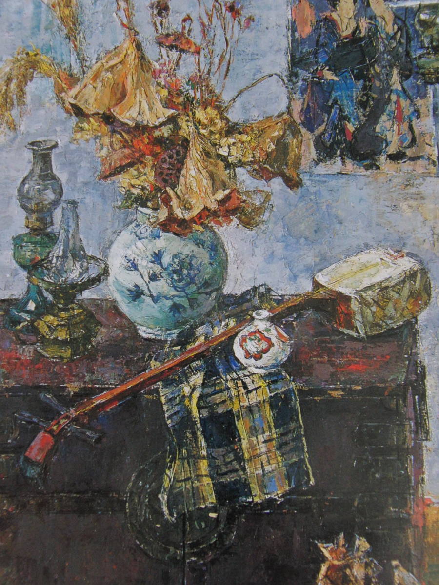 - 大野昌男、〈三味線と枯花〉、希少画集画、高級新品額・額装付、状態良好、送料無料
