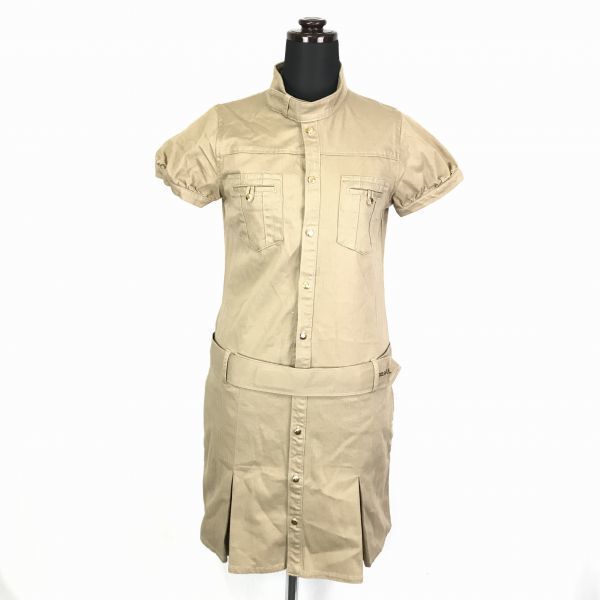 - X-girl★コットン/膝丈/半袖ワンピース【1/S/ベージュ】ベルト付き/ノーカラー/エックスガール◆BF364