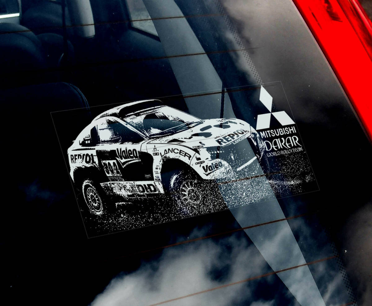 - ◆送無@三菱レーシングランサー@外張り カーステッカー 220×100mm@外貼り カー ステッカー@三菱 ランサー パリ・ダカール・ラリー@B1@3173