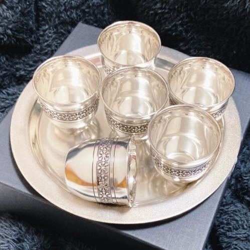 - a88)銀食器 シルバー ショットグラス ロシア ウォッカ 杯 トレー 6客セット グラス 銀 食器 盃 お猪口 コップ
