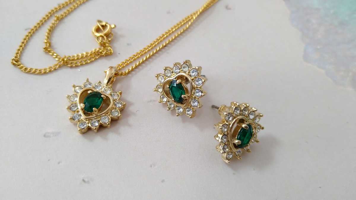 - □クリアグリーンビジュー×ゴールドカラー×ラインストーン・ネックレス&ピアスset□