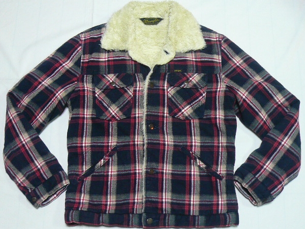 - Wranglerラングラー124MJフランネルボアジャケットL(40)紺x赤チェック