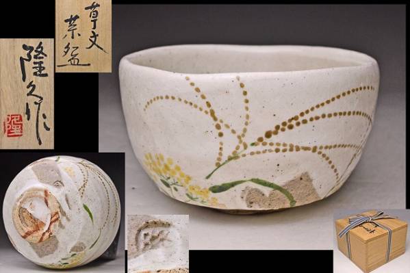 - 古川隆久 ★ 色絵草文茶碗 ★ 共箱 ★ 検 人間国宝 藤本能道 益子★