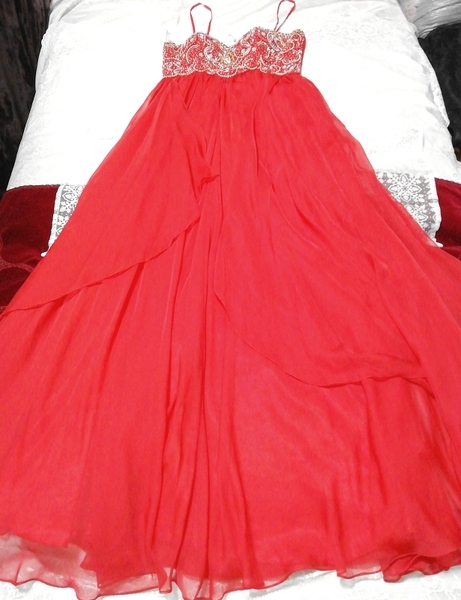 > 真紅赤豪華シフォンネグリジェキャミソールマキシワンピースドレス Crimson red luxurious chiffon negligee camisole maxi dress