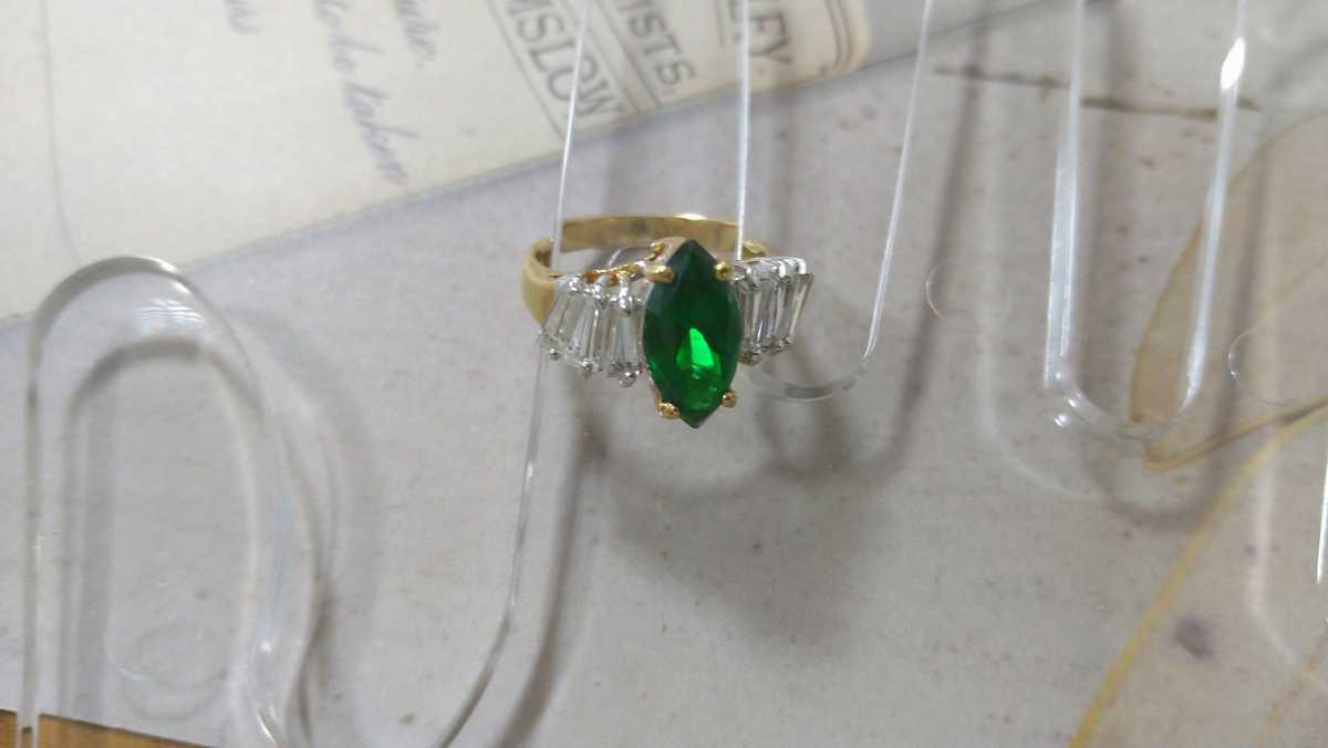 - □クリアグリーンビジュー×ゴールドカラー・リング□11号□