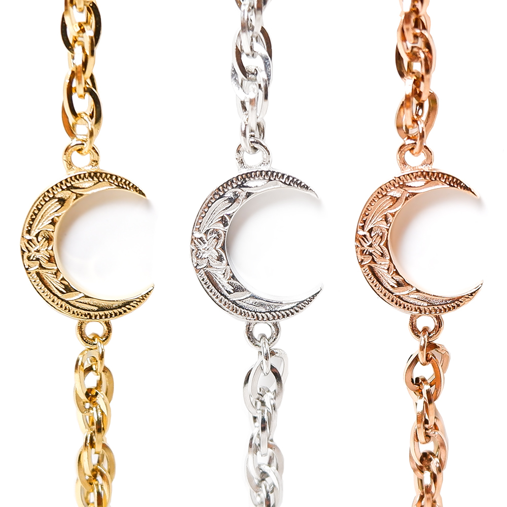 - ★SNS★お勧め★ハワイアンジュエリー★アレルギー&温泉&海水浴ご使用OK★ステンレスブレスレット★月ムーン&ゴールド&ピンクGD&シルバー★