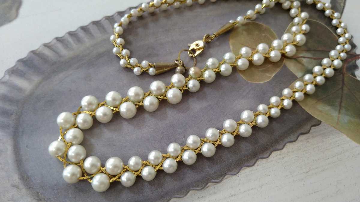 - □訳あり□ゴールドカラー×パールビジュー・ネックレス□