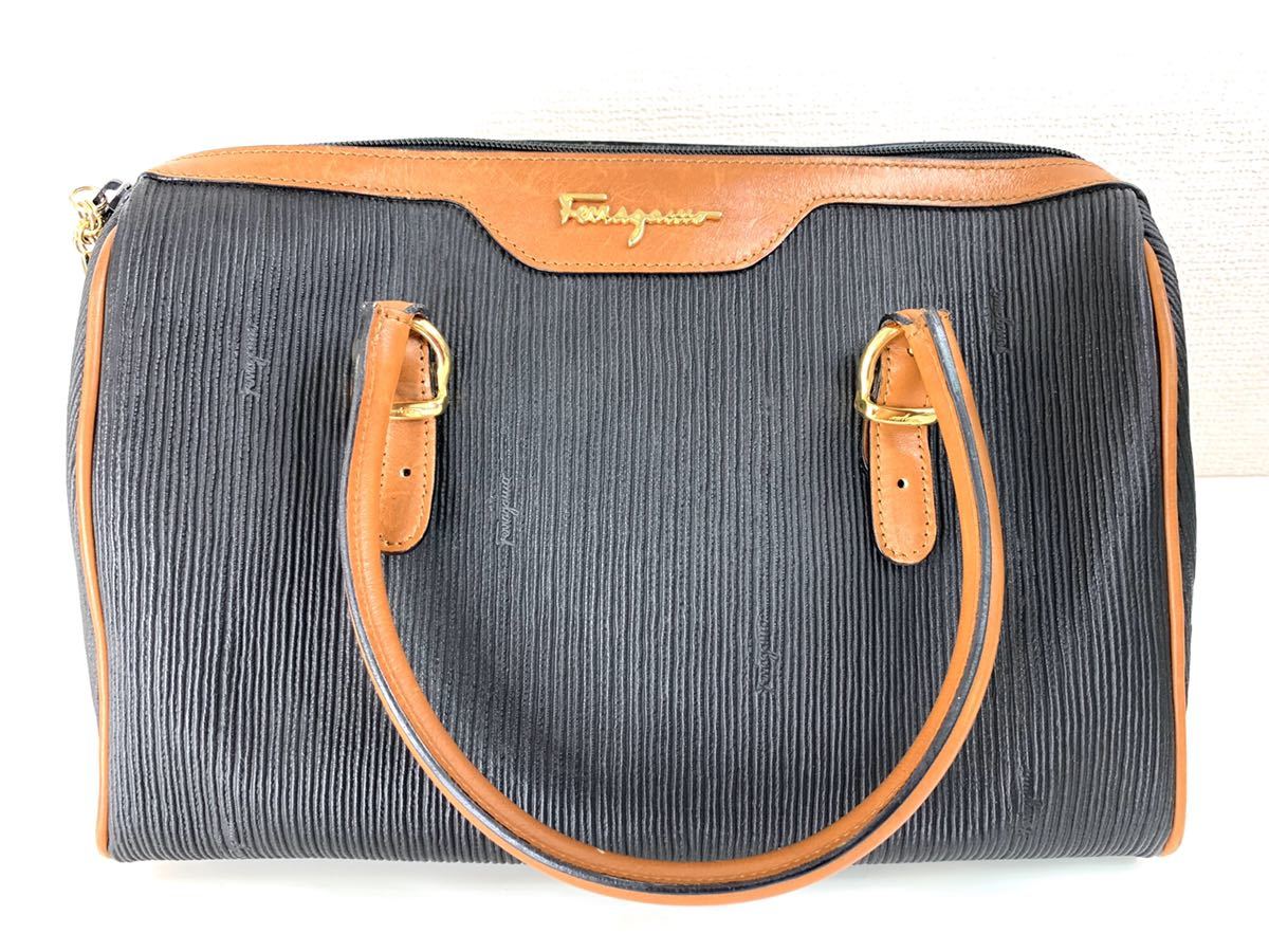 > 美品△Salvatore Ferragamo サルバトーレ フェラガモ ミニボストンバッグ ハンドバック レザー ブラック 管理2108