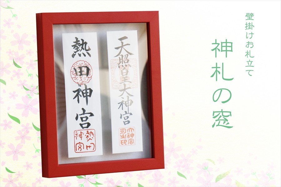 - 神札の窓 二柱 ■ レッド ■ 絵のような モダン神棚 壁掛け 専用ピン付き ■ お札入れ 27cmまでのお神札に対応■ お札立て お札差し 御札