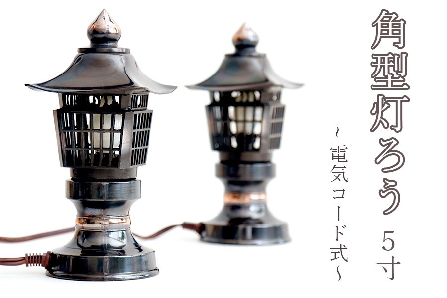 - 希少 神棚用 ■ 高品質 アンチモニー合金製 5寸 ■ 角型灯籠 ブロンズ 一対 ■ 電装コード式