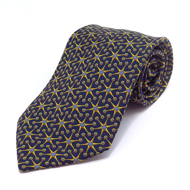 - 【HERMES/エルメス】ネクタイ シルク100% 星柄 ネイビー/イエロー メンズ 男性 結婚式 プレゼント ギフト 人気 おしゃれ【中古】/10008112