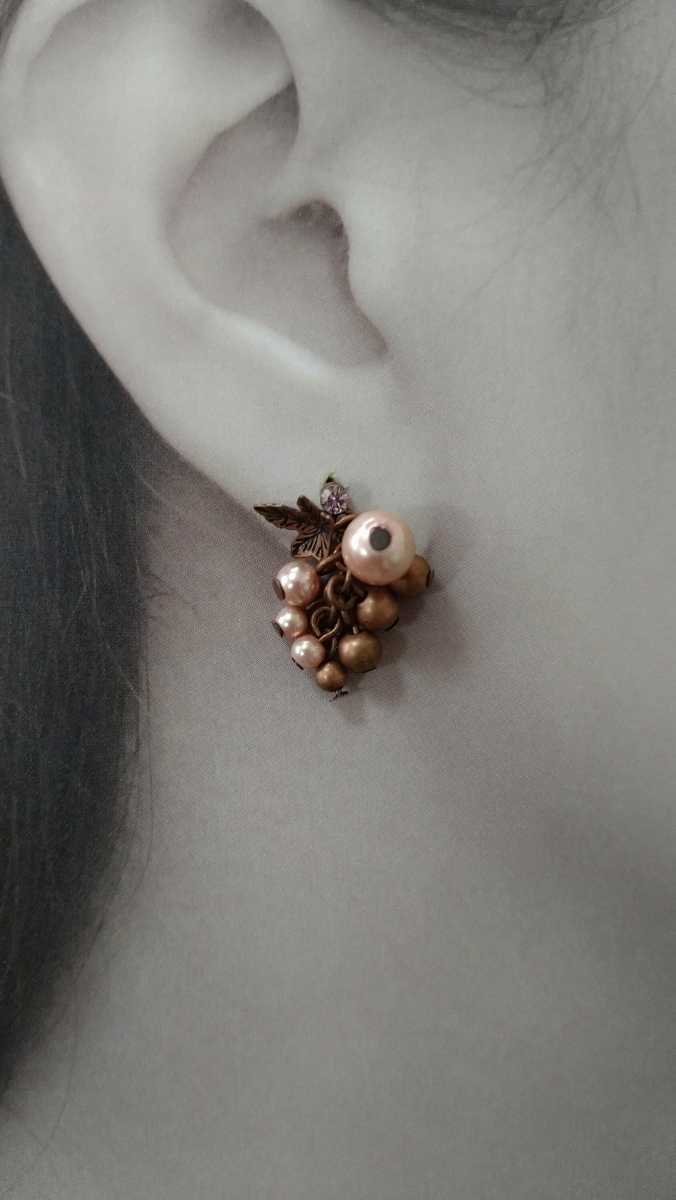 - □シャンパンピンク×ぶどうモチーフ・ピアス□