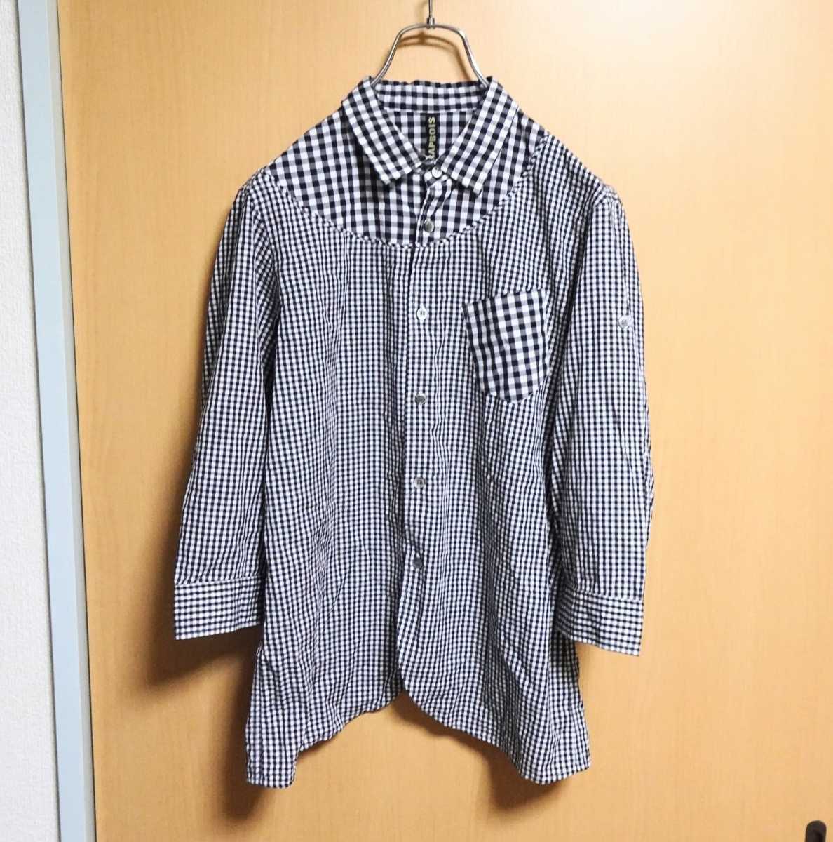 > FRAPBOIS フラボア ロールアップシャツ ギンガムチェック 白黒 サイズ1 レディース メンズ ユニセックス 7分丈 シャツ ブラウス 日本製