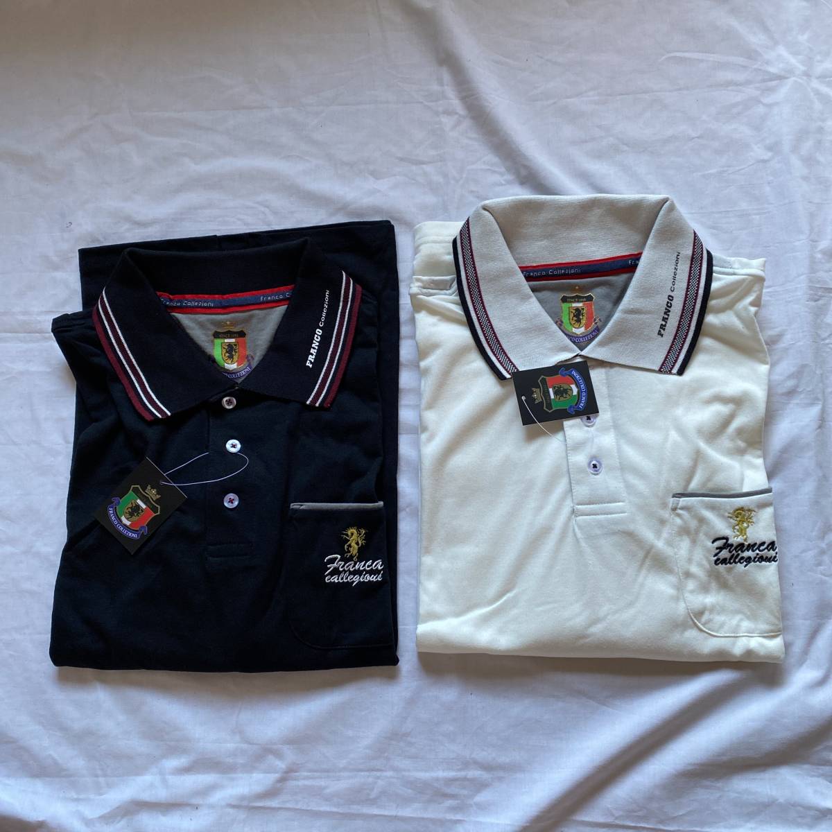 - 七分袖ポロシャツ 2着 Mサイズ 黒 白系 フランコ コレツィオーニ カジュアル ゴルフウェアに 2枚7.260円品■■未使用品