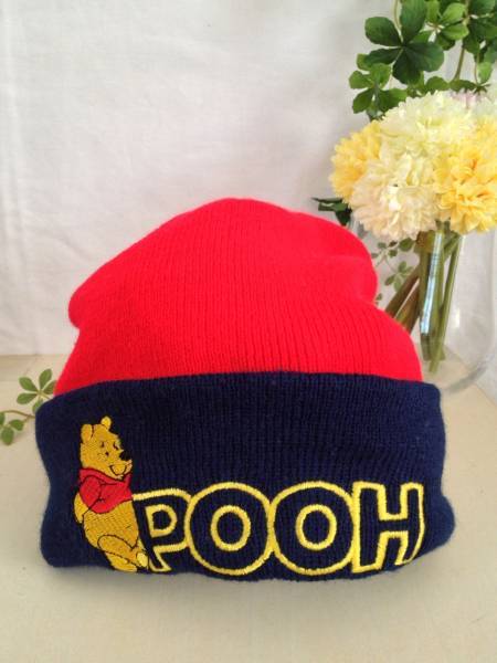 - ◆プーさん・赤と紺のあったかニット帽◆幼稚園サイズ