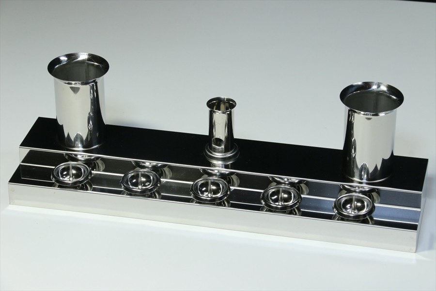 - 墓参用品■仏具■ステンレス ローソク立5 花立2 線香1 セット