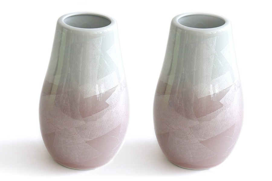 - 国産 陶器 花瓶 ■ パール仕上げ ■ 桃 7寸 ■ 下太 ■ 2本組 高さ22cm ■ 花瓶
