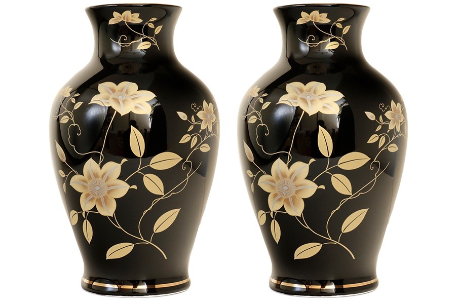 - 国産 花瓶 ■ 鉄仙花 尺0 ■ 黒 ■ 2本組セット 高さ30cm ■ 贈答 ■ 仏壇 お盆 お彼岸 お墓参り 供養