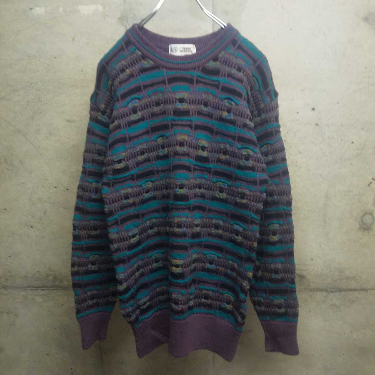 > 90s 3Dニット coogi風 総柄 立体編み セーター 古着 used vintage ヴィンテージ ビンテージ ニット knit