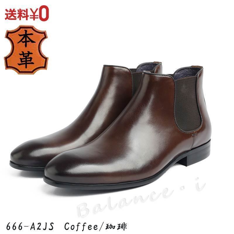 > ブーツ コーヒー 25cm 本革 サイドゴアブーツ ショートブーツ メンズブーツ カジュアル レザー EEE 666-A2JS