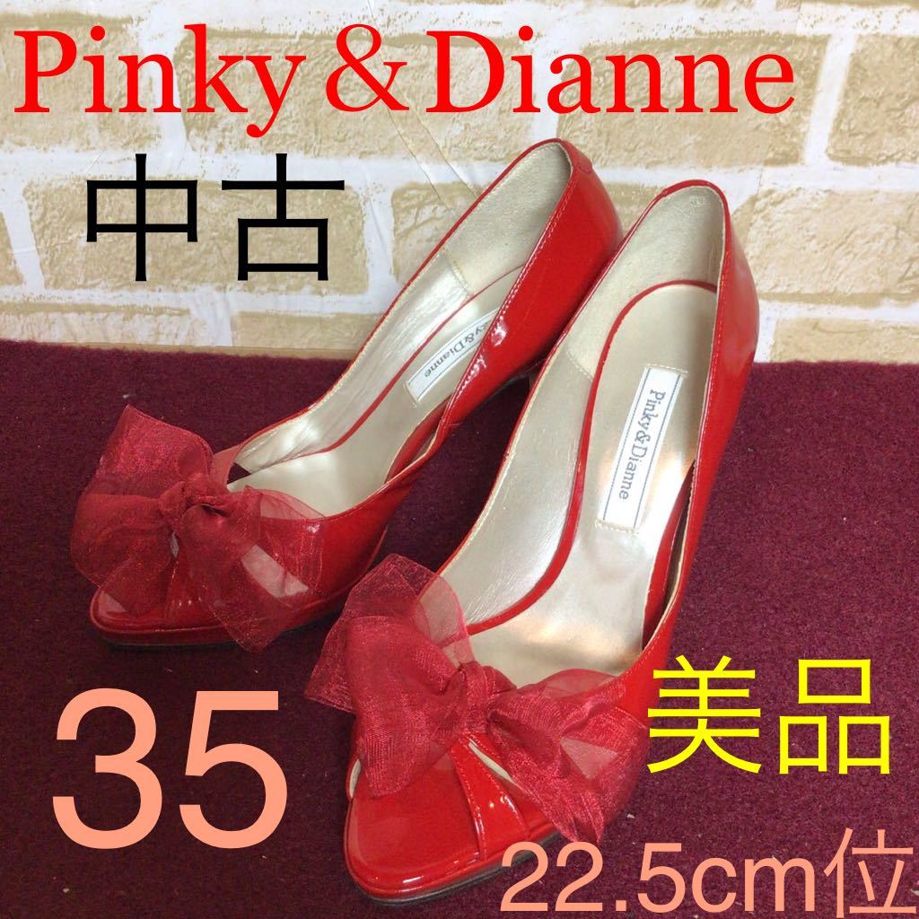- 【売り切り!送料無料!】A-150 Pinky&Diann!リボン付きミュールパンプス!赤!35 22.5cm位!ハイヒール!約10cmヒール!美品!リーガル!中古!
