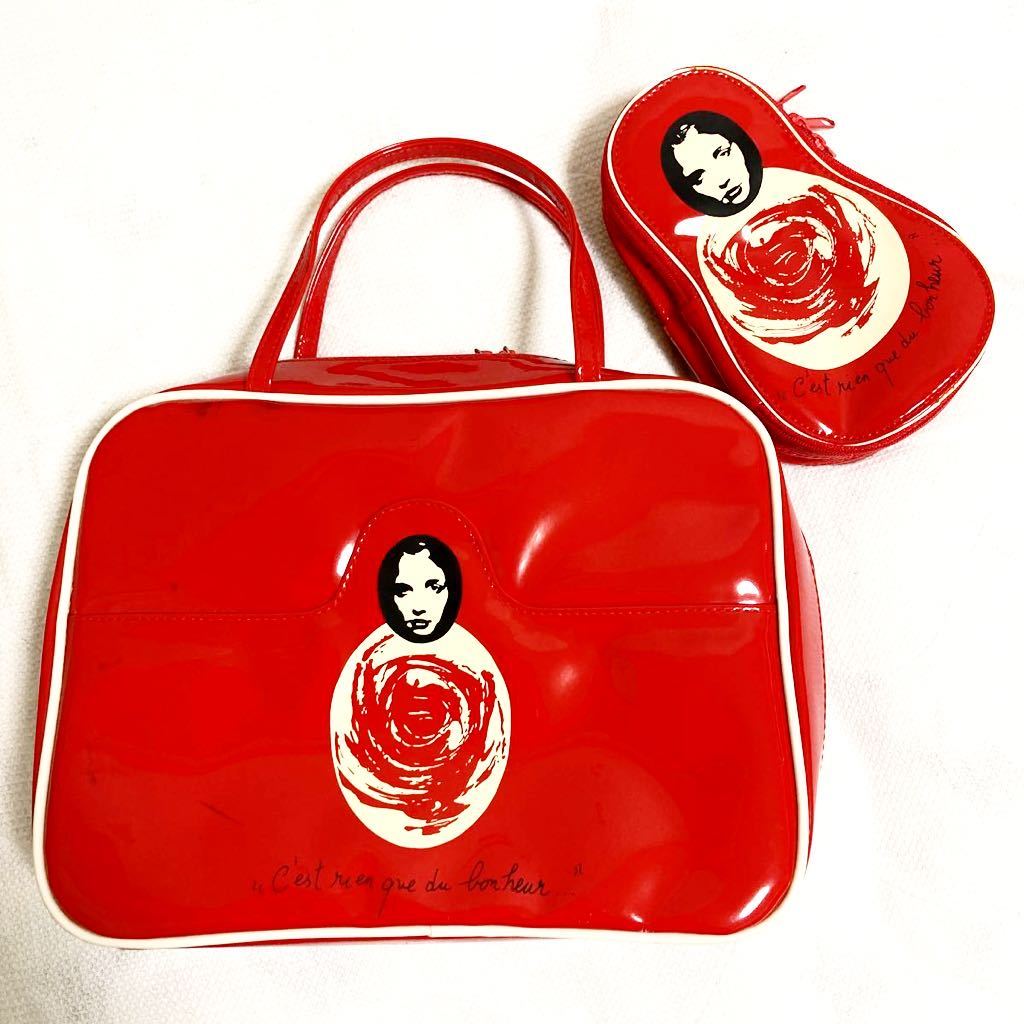 - a27)マトリョーシカ エナメル ハンドバッグ バッグインバッグ 旅行 仕分け ポーチ 化粧ポーチ コスメ 赤 レッド バッグ ロシア