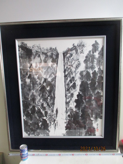 ★水墨画★風景画★滝★銘・落款あり★実子?◯子?★和紙★肉筆★額装★絵画★古美術★インテリア★アンティーク★②