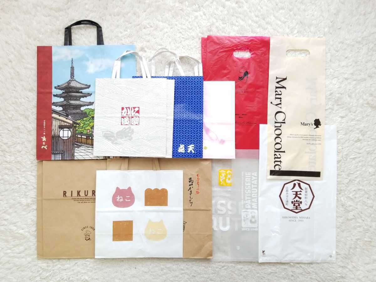 - ☆新品&美品全国銘菓ショップ袋14枚セット手提げ袋ショッパー紙袋ねこねこ食パン東京カヌレ八天堂りくろーおじさん点天まるたや他☆