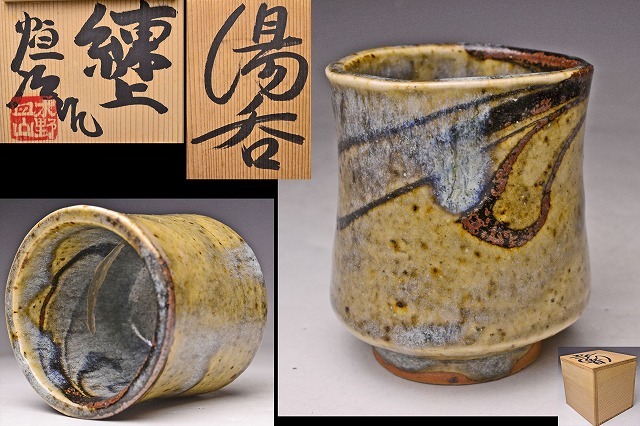 > 上田恒次 ★ 練上 湯呑 ★ 共箱 ★ 師:河井寛次郎 ★ 富本憲吉記念館の設計を手掛けるなど多才 ★ 民芸陶 ★