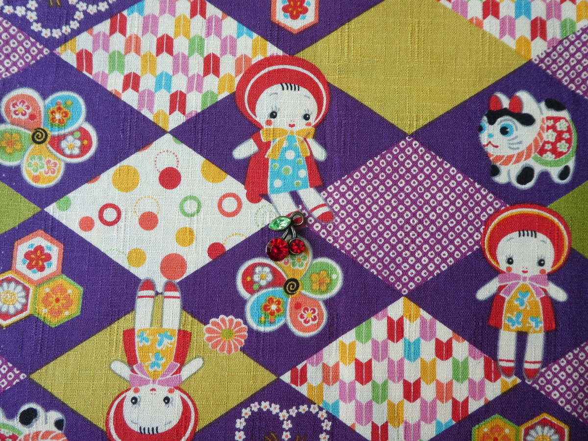 - レア★ はなちゃん格子菊生地紫★レトロ昭和和柄ルシアン文化人形矢絣