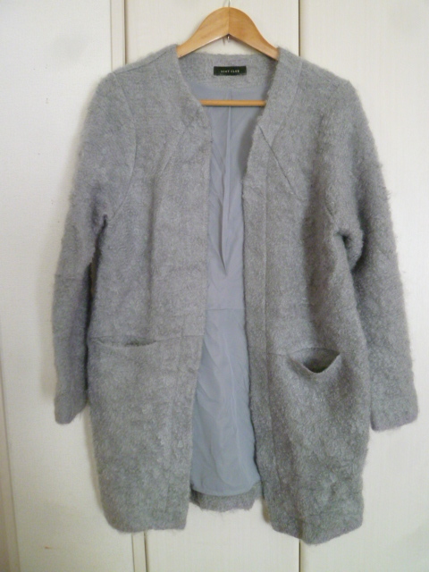 - SCOT CLUB/ライトグレーシャギーデザインガウンコート9号/ノーカラーコートウール混モヘア混△CT1117