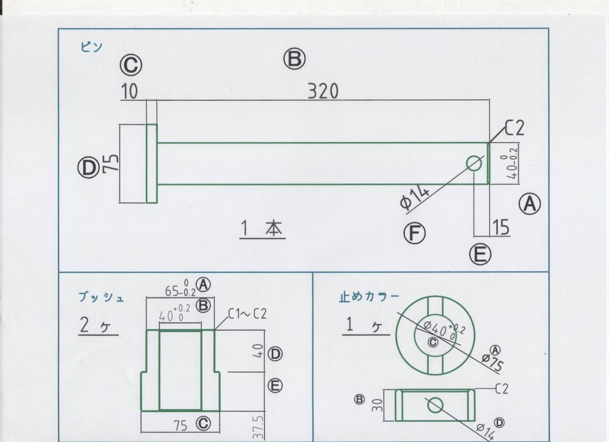 - NO.927 φ40用 バケットピン一式 バケットピン1本 ブッシュ 2個 止めカラー1個(リンクストッパー)ボルトナットセット