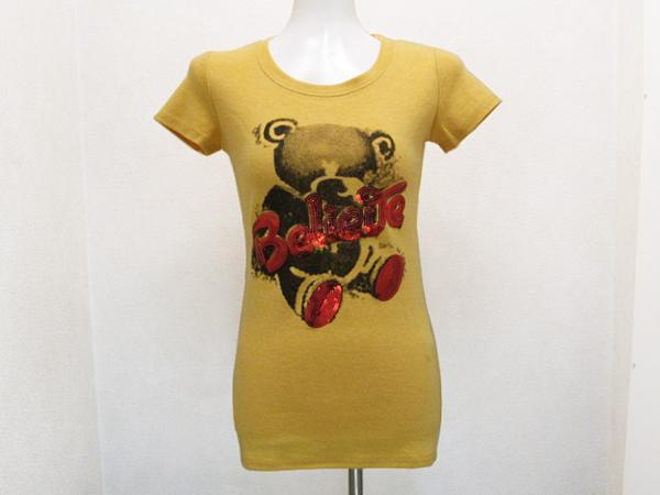 - hot-ticket スパンコール半袖Tシャツ 辛子色マスタード レディース / ルゥ・ディROUX DI女性Tee