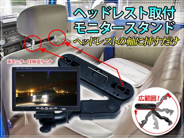 - ヘッドレスト取り付け用 モニターアームスタンド ブラケット
