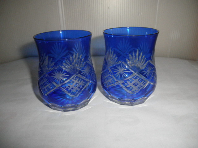 - @@@切子 薩摩切子? 江戸切子? 切子ガラス ガラス 工芸ガラス 2個 コレクション 切子グラス