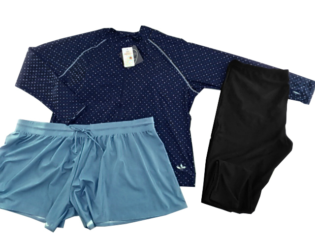 - レディース水着 3点セット フィットネス UV 長袖 Sサイズ ドット柄 ネイビー
