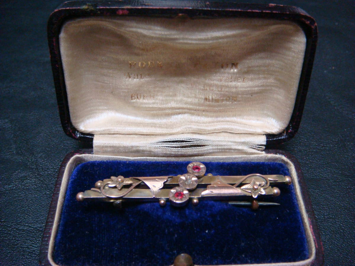 - ◇アンティーク ヴィンテージ ダイヤモンド ルビーブローチ M&V 12金◇