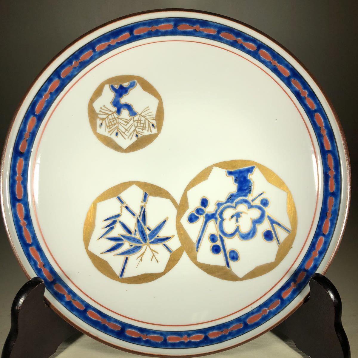 - 戸出政志作 九谷焼 飾皿 松竹梅(裏表) 888