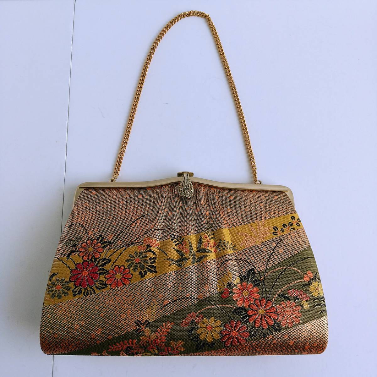 - 【和装小物】ハンドバッグ・金・花柄☆中古