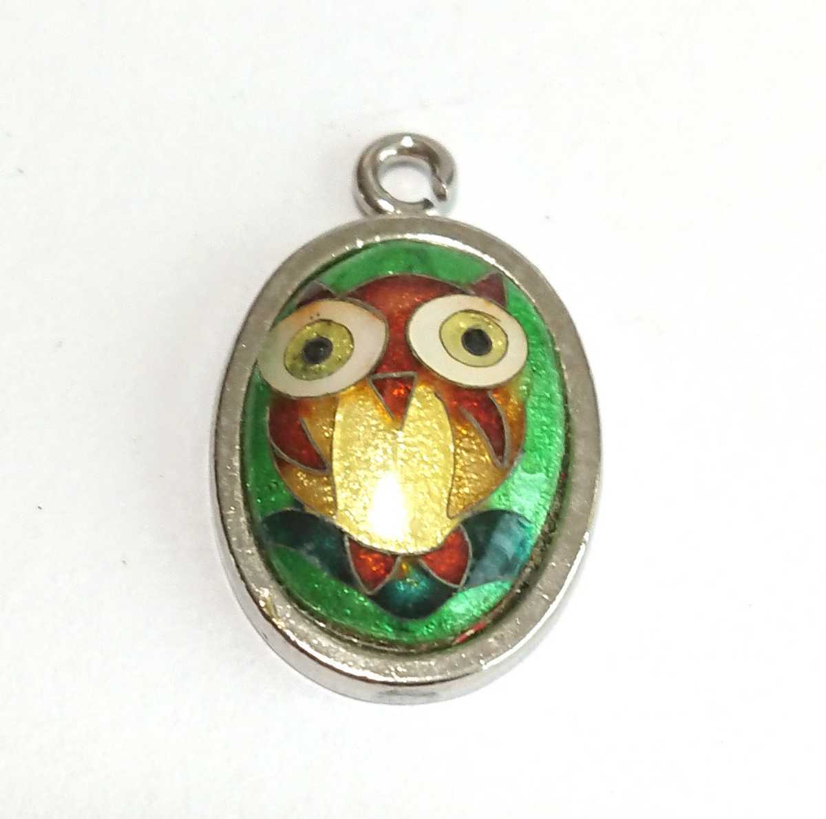 - ◆ ヴィンテージ 七宝焼 ふくろう 梟 ペンダントトップ ◆ 七宝焼き フクロウ ペンダント 七宝