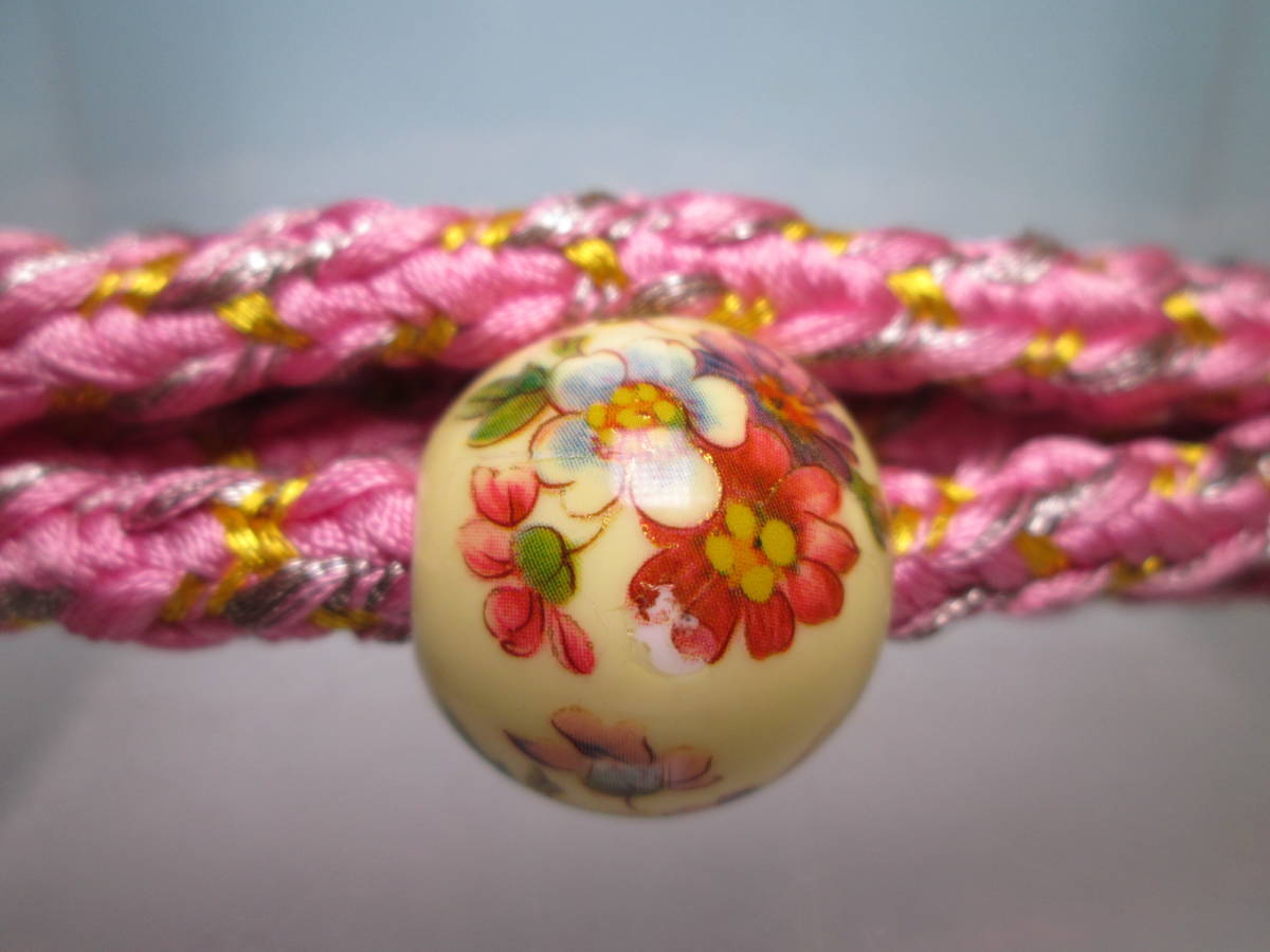 - ☆陶製 色絵花紋の可愛い丸玉の帯留め 帯締め付