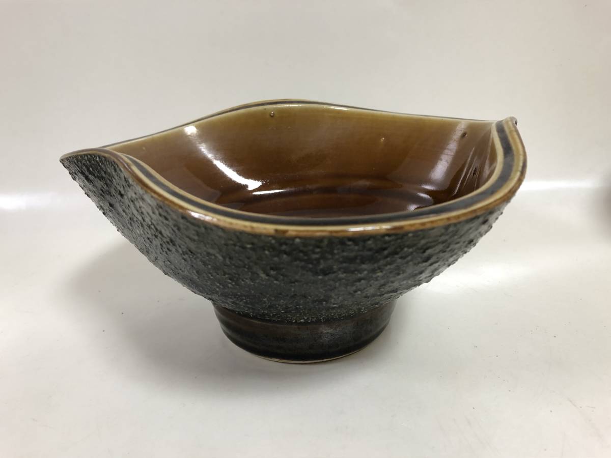 - ■三角形 花器 生花 高さ10㎝ 重さ1㎏ 在銘 水盤 花瓶 フラワーベース 盆栽 鉢 花道 旧家出 アンティーク■サ91