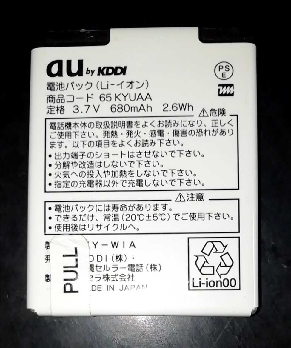 - 【中古・残り1個】au純正65KYUAA電池パックバッテリー【充電確認済】対応機種(参考)W65K