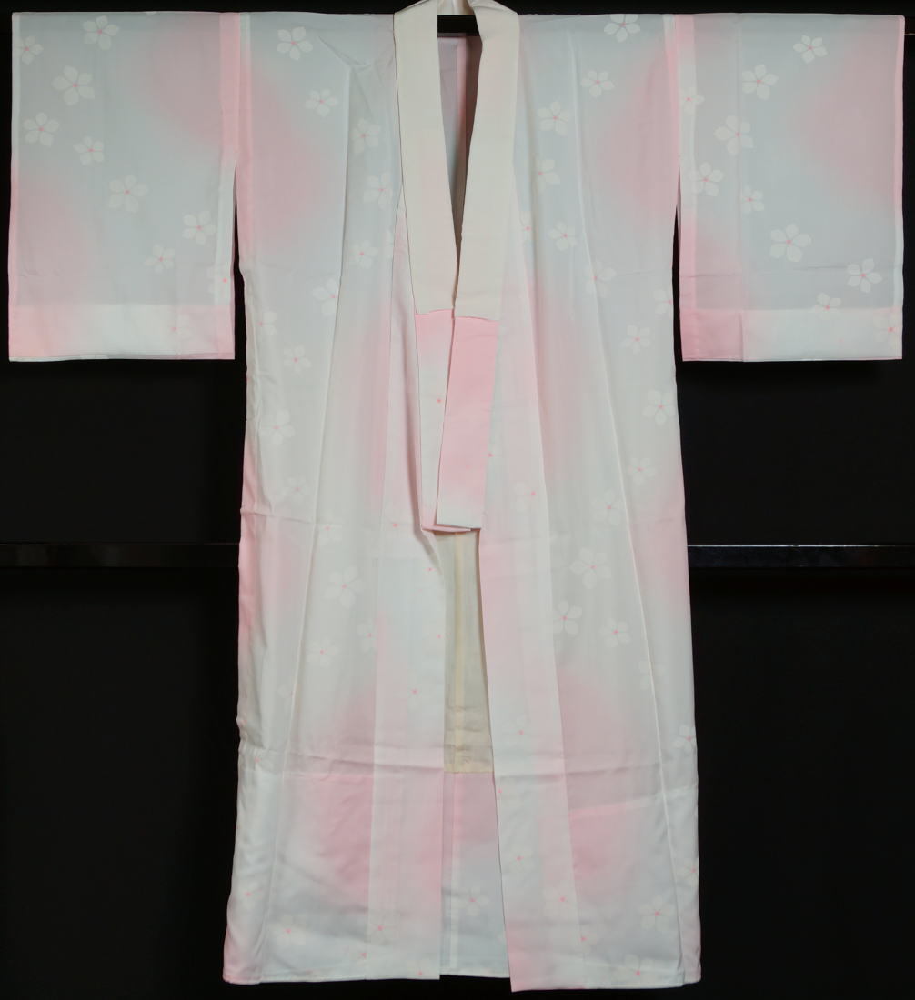 - 長襦袢 桔梗模様 化繊 単衣仕立て 袖は無双 薄ピンク色ぼかし 襦袢 中古 じゅばん リサイクル長襦袢 着物 リサイクル着物 京都きもの天陽