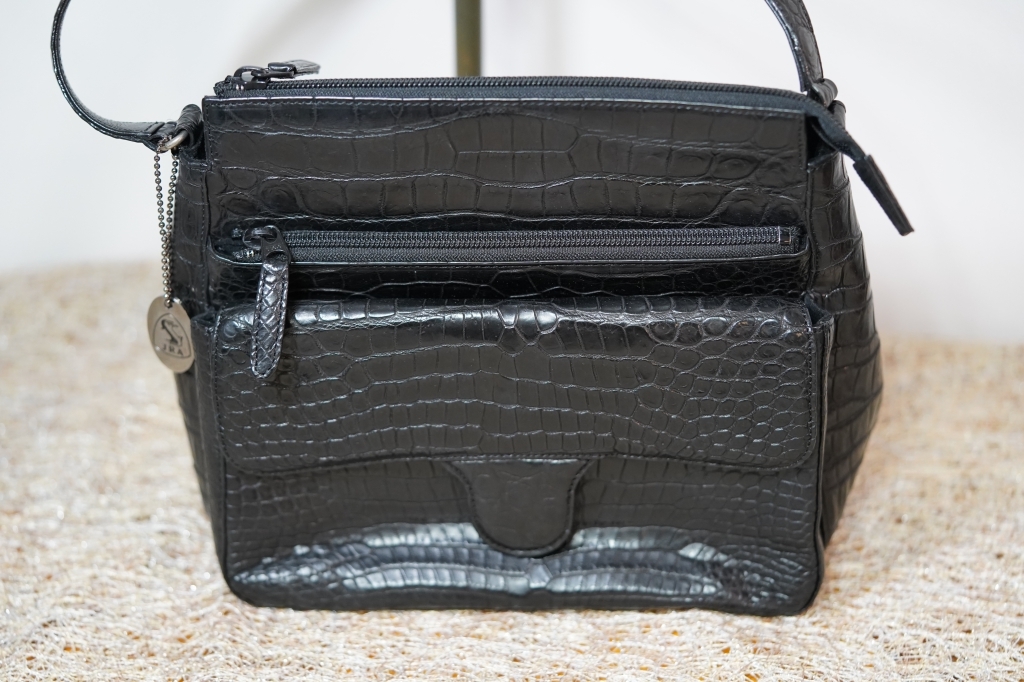 - マットクロコダイル 斜め掛け ショルダー メンズ ブラック 日本製 最高級