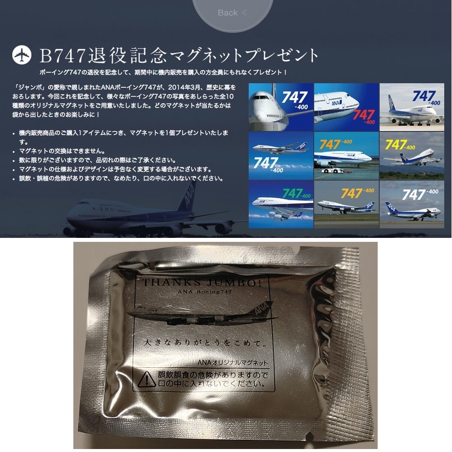 - 不定期出品★新品未開封★非売品 2014年 ANA B747退役記念マグネット ボーイング747−400型機 ジャンボ 飛行機 オリジナル コレクション