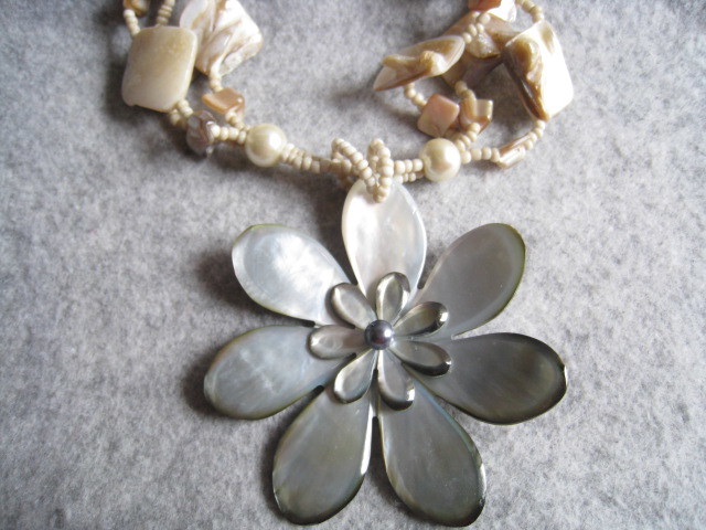 - [SAMU]華麗!!艶抜群 天然黒蝶貝 花幅7.2cm 長さ50cmネックレス★美品 !