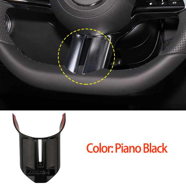 - ブラックメルセデスベンツAMGCESクラスW206W213w2232021+用ロゴ付きABSプラスチックフラットステアリングホイールロアトリム
