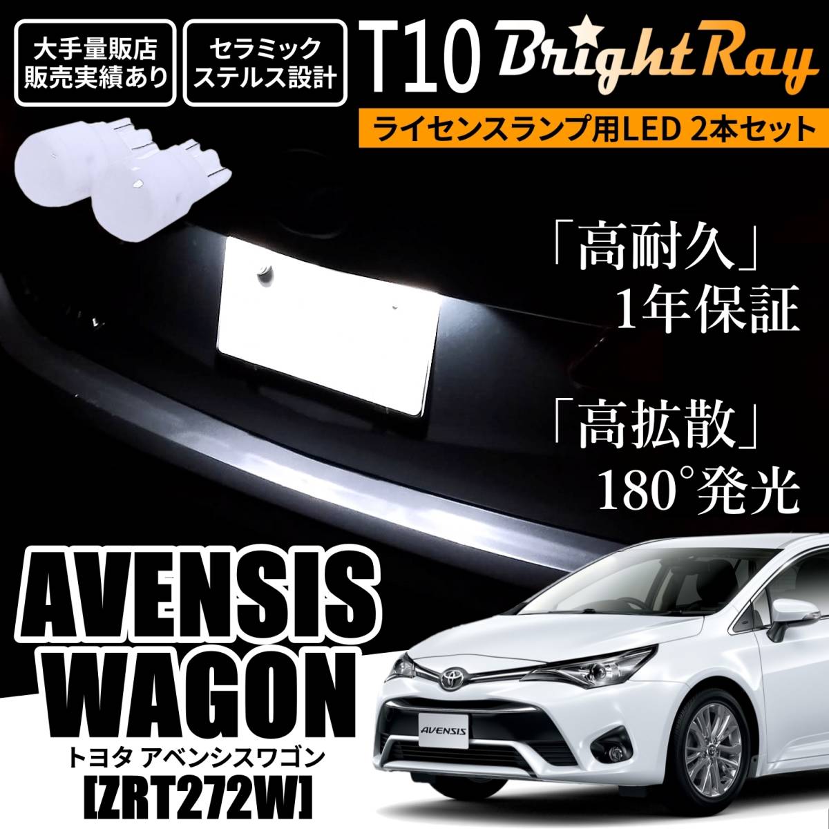 - 送料無料 トヨタ アベンシスワゴン ZRT272W BrightRay T10 LED バルブ 1年保証 ナンバー灯 ライセンスランプ ウェッジ球 ホワイト
